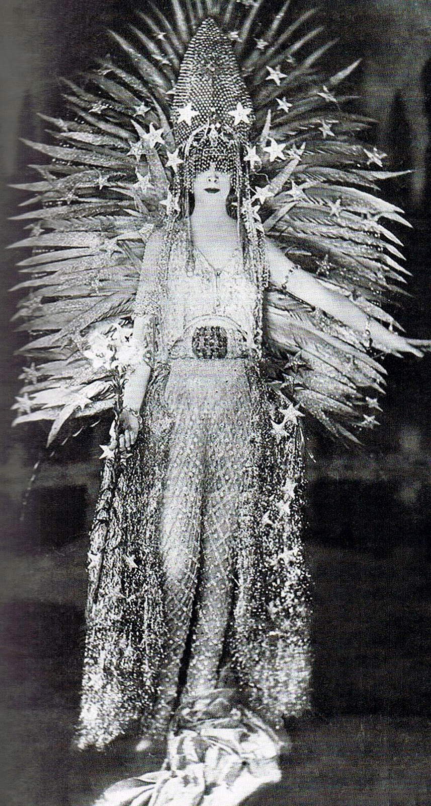 I suoi look eccessivi hanno fatto storia: la marchesa indossava vistosi gioielli zoomorfi, pantofole con diamanti, lunghi abiti di pesante velluto, guanti in pelle di tigre, cappotti di pantera, bizzarri copricapi: i ritratti di Boldini e Martini ce la restituiscono in tutta la sua appariscente bellezza. E questa sera Achille Lauro ha scelto un costume ispirato proprio ai costumi che la marchessa indossava: “la Divina Marchesa Luisa Casati Stampa”, ha scritto sul suo profilo Instagram, “musa ispiratrice dei più grandi artisti della sua epoca. Grande mecenate, performer prima della performing art e opera d’arte vivente”.