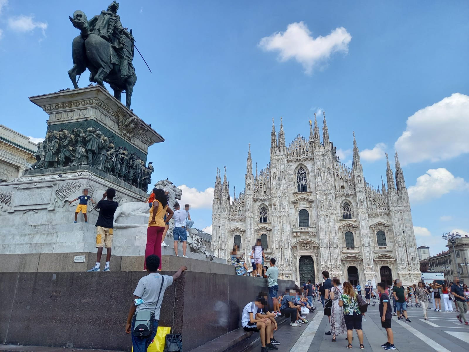 Non è la prima volta che accade, così come non è la prima volta che in piazza del Duomo a Milano, nonostante le forze dell’ordine abitualmente schierate, qualcuno salga sul monumento a Vittorio Emanuele II, opera di Ercole Rosa inaugurata nel 1896, che fronteggia la Cattedrale. I turisti, incuranti dei cartelli affissi alla base del monumento che proibiscono salite e arrampicate, anche ieri sono montati a frotte sul monumento per scattarsi selfie e foto di gruppo.