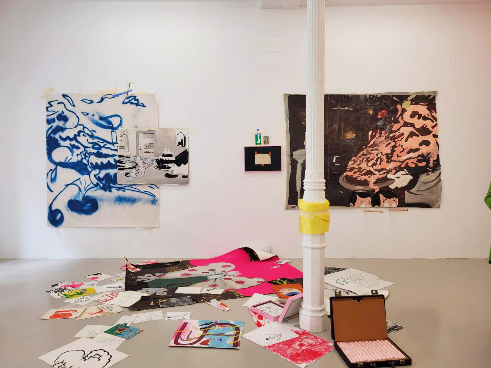 Galería Marta Cervera , on the other hand, presents an artist from the past, American Bob Smith (Robert B. Smith; Springfield, 1944 - Miami, 1990): with the exhibition Días de oro y plata, works made during Bob Smith’s long stay in Madrid are exhibited, namely drawings, engravings, objects and canvases in which personal experiences and emotions from his travels through Europe and the Middle East are crystallized. Smith, after traveling through Europe and spending a year in Morocco where he learned the craft of wood and silver inlay, decided to settle and work in Madrid. His work thus came to Galeria Vandrés, an important hub of the avant-garde in the 1970s. During that decade the artist exhibited regularly in Spain, France, Germany and Italy and was included in the 1973 Paris Biennale at the Musée d’Art Moderne. He received numerous awards, including the Pollock-Krasner Foundation Fellowship, and in 2022, a retrospective of his work took place at the Martos Gallery in New York. Instead, it is Inmaculada Salinas (Guadalcanal, 1967) who is the protagonist at Gallery 1 Mira Madrid with the exhibition La voz a ti debida, which speaks of themes dear to the artist, starting with that of work. Indeed, Salinas wants to raise fundamental questions about the emancipation of labor and violence, leveraging elements and images drawn from reality and drawings and calligraphic exercises that, repeated over and over again, shape a narrative about the factors that led to this situation and its consequences. These works, which represent one of the most extensive and complex series in his overall production, are exercises in memory and autobiography. They speak of manual labor as a way of thinking, of resistance to any logic of capital production, of the economic conditions associated with it, of the dynamics of studying outside the studio and of time spent working. And also about the right to laziness and doodling as a masterpiece.
